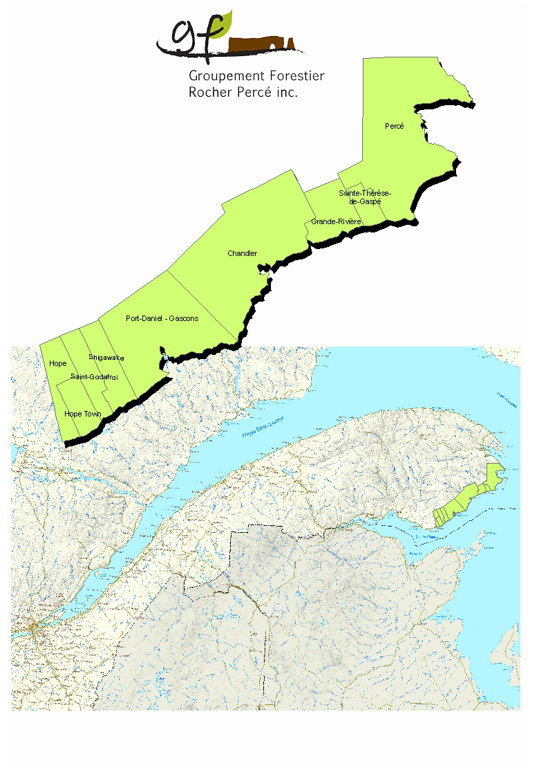 En forêt privée, le Groupement Forestier Rocher Percé offre le service de conseiller forestier sur les territoires des municipalités de Hope, Hopetown, Shigawake, Port-Daniel-Gascons, Chandler, Grande-Rivière, Ste-Thérèse-de-Gaspé et Percé.